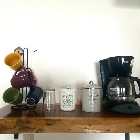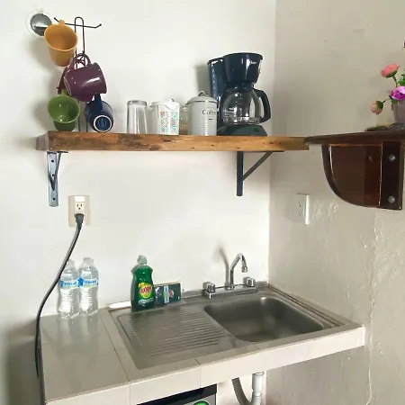 Outre une cafetière/théière, les équipements indépendants de la cuisine complète comprennent un micro-ondes et un réfrigérateur. Vous pourrez également prendre un bus à l'arrêt de bus Taxi/collectivo to chetumal, située à moins de 5 minutes à pied, pour explorer le reste de Bacalar.